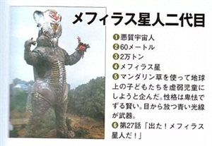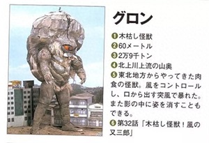 在东京上空的黑云中隐藏身形,突然在地面实体化出现的怪兽。可以从口中吐出超过七十米每秒的狂风。被称作怪兽妖术师,能够像影子一样在地面和建筑物的墙壁上移动,全身都分布有大脑。