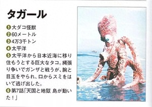 塔戈尔来到八丈岛附近的DU海域,遇见了浮在海面上的大螃蟹怪兽甘扎,由于两个物种天生敌对,加上要争夺领地,塔戈尔和甘扎大打出手。塔戈尔使用8只触手攻击甘扎,但被甘扎的甲壳阻挡,并且还被甘扎切断了其中两根触手。塔戈尔虽然好战,但当遇见自己打不过的对手时便会马上逃走,于是从口中吐出墨汁模糊甘扎的视线,想趁机逃走,但在逃跑的过程中还是被甘扎刺瞎了一只眼睛。塔戈尔虽然最终沉入了水中,但其受伤太重,最终生死不明。
