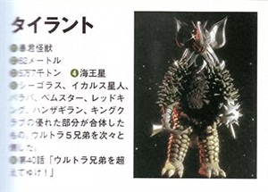 由怪兽、超兽以及宇宙人的灵魂合体而成。结合七者最优秀的身体部分组合而成的强大怪兽,在《泰罗奥特曼》TV第40集先后打败佐菲、初代、赛文、杰克、艾斯五个奥特战士,来到地球后被泰罗打败。在后续的奥特系列作品中也陆续有登场。