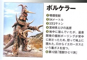 波尔凯拉是生活在九州宫崎县的九野高原地底一带栖息,属于地底怪兽的一种。由于开发商包下了河原一带进行温泉开发,而开发用钻井机搭建的选址点正好位于沉睡的波尔凯拉的正上方。波尔凯拉被钻井机打中后脖颈部位,从沉睡中苏醒,造成附近的地震和地面塌陷等灾祸,而温泉挖掘的名人林田也掉进了波尔凯拉制造的地缝里而失踪。