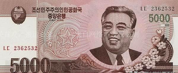 对于5000朝鲜元,我们可以看到有两个不同版本。其中一种是2002年版,正面印有金日成的肖像,背面呈现了金日成的故居——万景台。另一种是2009年版,正面也展示了金日成的故居,而背面则呈现了国际友谊展览馆。