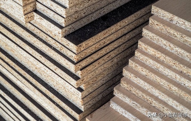 第一个就是颗粒板,颗粒板是把木材给粉碎了以后,然后再添加胶粘剂把它粘合而成的一种板材,因为像一些大品牌的颗粒板通常都是有自己的林区,那么就会选择一些比较天然的原木木材,然后再进行加工,虽然说这些木材里面有大径木有小径木,还有一些树木的小枝丫,然后把它粉碎了再压合而成。