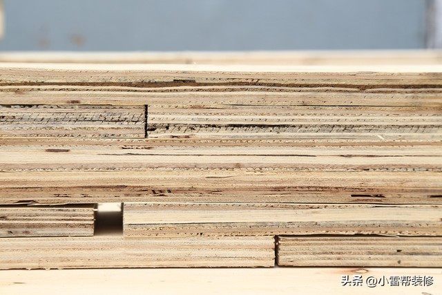 第二种就是多层板,多层板它也是利用这个足径的圆木,然后来进行旋切,把木材给切成一片片的小薄片,然后再横向纵向的把它压合而成。那么这种板材它保留了木材的一些特性,但是又由于它横向纵向的铺装方式又把这个木材容易变形的这种特性又相互制衡了一下,所以这种板材它的横向纵向的强度要更高一些,也就是说会更结实一些。