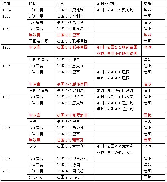 △ 法国队世界杯历史上在半决赛4次遭遇欧洲球队,2次晋级2次被淘汰。
