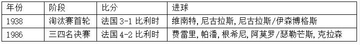 △ 法国和比利时在世界杯中有过2次交锋,法国队均击败对手。