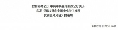 - 教育部公布!14部推荐中小学生必看的影片,值得孩子看N遍! 身为家长,既然现在的孩子离不开网络,总想让孩子通过网络学习更多的正能量,有益于身心发展,学习成长,与君共勉!...
