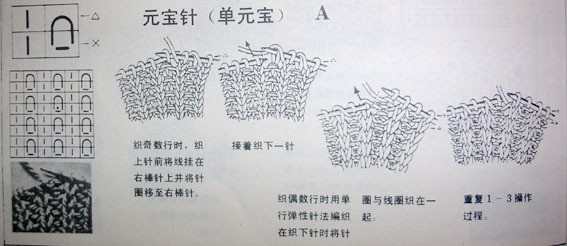 1、单元宝就是奇数排织单罗纹(一针下一针上),偶数排织下不织上,但上针要把线绕到右棒针上,下一排的时候将上针的这两根线一起织。2、双元宝按单罗纹起针,此后每一行都是织下不织上,上针要把线绕到右棒针上,下一排的时候将上针的这两根线一起织。收针用单罗纹收针法。