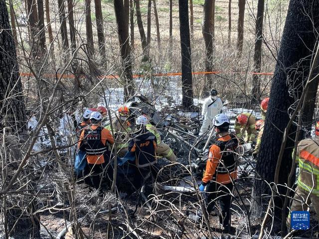 11 月 27 日,在韩国江原道襄阳郡,救援人员在直升机坠毁现场工作。韩国一架直升机 27 日坠毁于江原道襄阳郡山间,造成 5 人死亡。据韩联社报道,该直升机于上午 10 时 50 分许坠落后起火,消防部门灭火后发现 5 具遇难者尸体。目前遇难者身份仍在确认中。据报道,该直升机事发时正在空中进行山火预防巡视。新华社 / 纽西斯通讯社