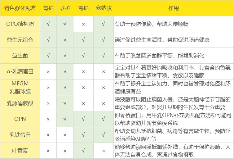 菁护和塞纳牧有机则比较相似,但菁护的优势在于DHA含量比塞纳牧有机奶粉更高,且含有有助于视力发育的叶黄素;而塞纳牧有机的优势在于有机奶源。