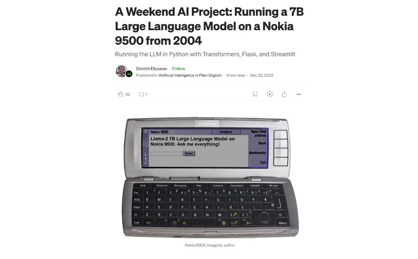 但在精简模型体积、增加运行效能的道路上还有很大的提升空间;目前开发者甚至能在 2004 年发布的诺基亚 9500 的硬件上,运行一个 70 亿参数大小的本地大模型。
