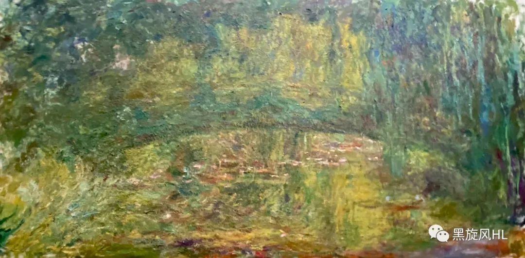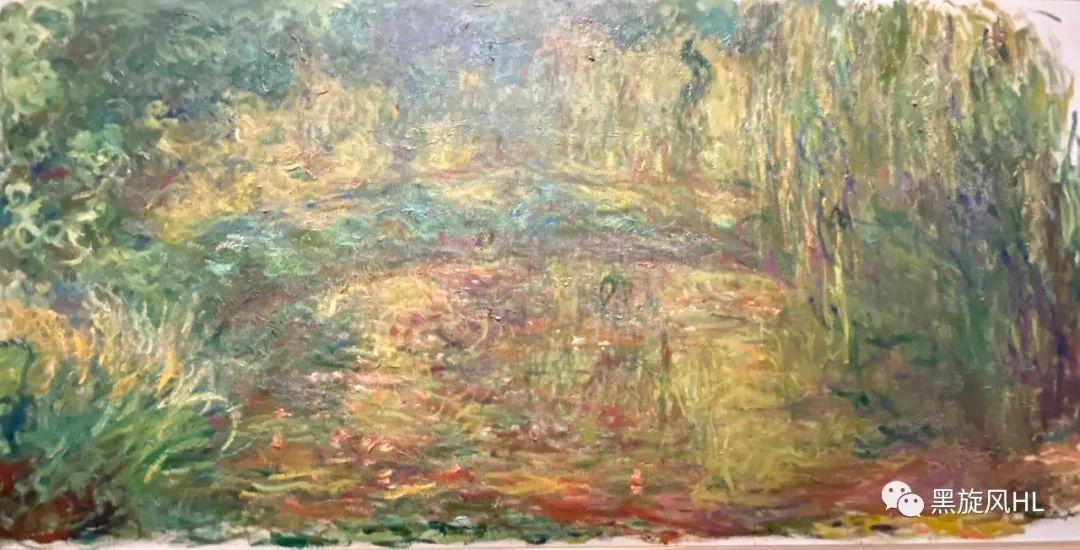一生追逐光的莫奈到了晚年被光所背叛,他患了白内障,视力越来越浑浊,很多画都是靠助手调好颜料再凭印象作画。《垂柳》系列创作于一战时期,莫奈为战争哭泣,为死亡哭泣,也为自己无法清晰地看到世界哭泣。