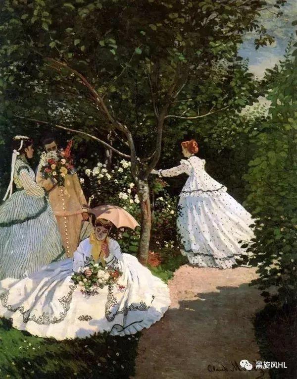 莫奈在画“日出”以前,曾有过表现“草地野餐”的系列作品,这是当时才二十多岁的画家对工业化后巴黎城市新生活的直接感受。在《公园女子》中,阳光与阴影真实再现,莫奈要表现的不再是女子清晰的轮廓,而是光与影的巧妙结合。