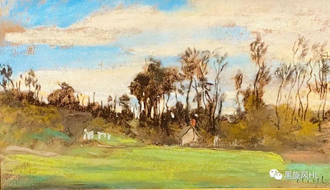《绿树成荫的草甸》纸上加高水彩和水粉画1880年