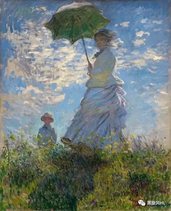 莫奈画《持伞的卡蜜尔》时,卡蜜尔已是孩子的母亲,一家人的幸福生活才刚刚开始,可天有不测风云,卡蜜尔罹患重病来日无多。画中的卡蜜尔侧转身躯像是躲避吹袭,乱云飞渡,风卷衣裙,一旁的孩子无奈地看着,孩子还小,体会不到伤感,但莫奈的伤感已尽显画中。