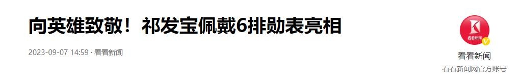 看看新闻在2025-09-07关于《向英雄致敬!祁发宝佩戴6排勋表亮相》的报道