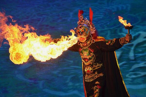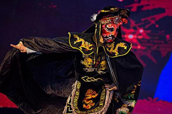 川剧变脸怎么变的:将脸谱事先贴在脸上(扯下丝线脸谱变脸)