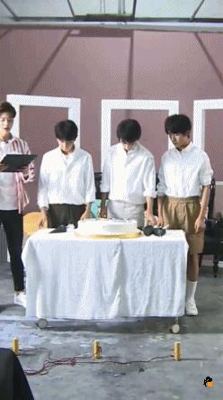 做完蛋糕后,映客为TFBOYS四周年生日,在现场准备了烟火,不过工作人员突然点燃,把三小只吓的大叫着猴蹿,看,王俊凯都跳到旁边的沙发上了。