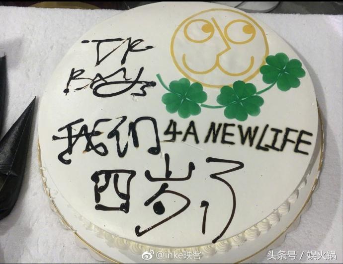 另外,三小只还一起在四周岁蛋糕上写下了“TFBOYS我们四岁了”。诺,这就是杰作。