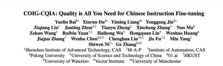 这是一篇题为《COIG-CQIA: Quality is All You Need for Chinese Instruction Fine-tuning》的论文,作者来自多个国内外高校,简单来说,他们提出了一个中文指令微调数据集 COIG-CQIA(全称为 Chinese Open Instruction Generalist-Quality Is All You Need)。