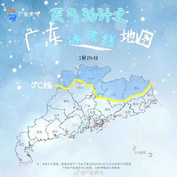 ◆预计,23 日 -24 日,受冷空气补充影响,广东大部阴雨寒冷,各地气温持续下降,将有大范围的 5 ℃及以下低温,粤北、珠三角北部的山区最低气温可达 0 ℃以下有冰冻,粤北山区有冻雨或小雪,需注意做好防寒防冻及防大风相关工作,外出需注意交通安全。