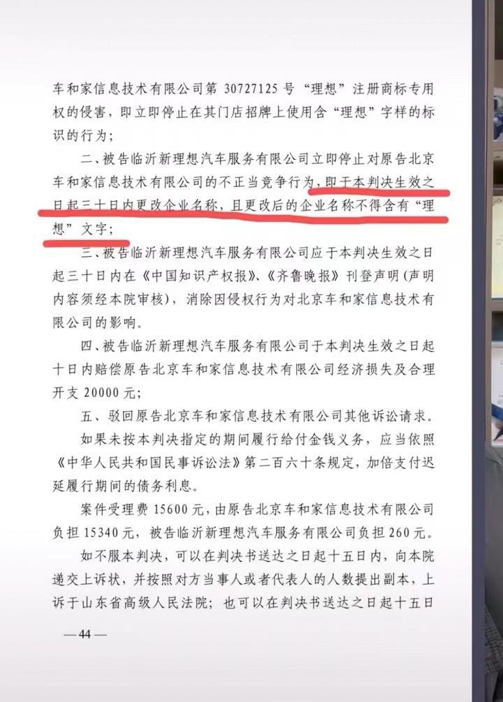 IT 之家 3 月 27 日消息,去年 7 月,理想汽车以 " 侵害商标权及不正当竞争纠纷 " 为由,起诉山东临沂一家带有 " 理想 " 二字的贴膜店并索赔 120 万元,目前该案的一审判决已经出炉。