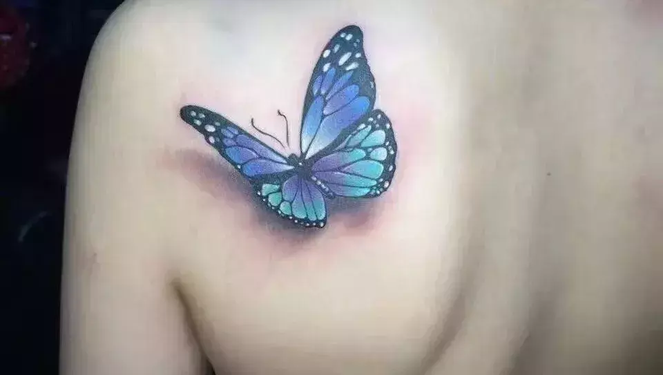 看到这个纹身有没有一种感觉,感觉这个蝴蝶要翩翩起舞?这个就是3D纹身,使纹身具有立体感,使纹身更具有鲜活性。