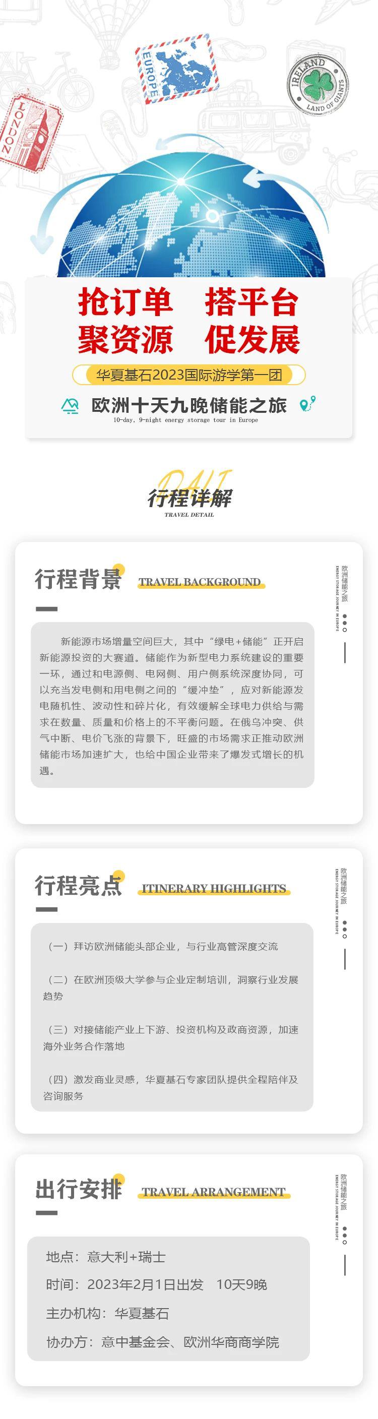 为此,华夏基石专门打造 "2025 国际游学第一团—欧洲 10 天 9 晚储能之旅 ",拜访欧洲头部企业高管、对接产业资源、学习先进经验……