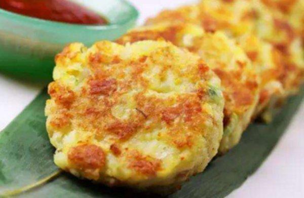 平底锅倒油烧热,放入土豆饼煎至两面金黄。