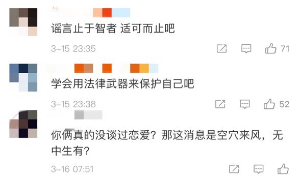 网友们在看到这段视频后,有人表示:"你俩真的没谈过恋爱?那这消息是空穴来风,无中生有?"还有人称:"谣言止于智者,适可而止吧。"也有人劝道:"学会用法律武器来保护自己吧。"