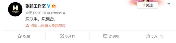 不过这一次张翰没有保持沉默,直接站出来用“没联系,没复合”六个字回应了传闻,言简意赅又冷漠坚决,彻底斩断了粉丝对二人复合的所有期待。