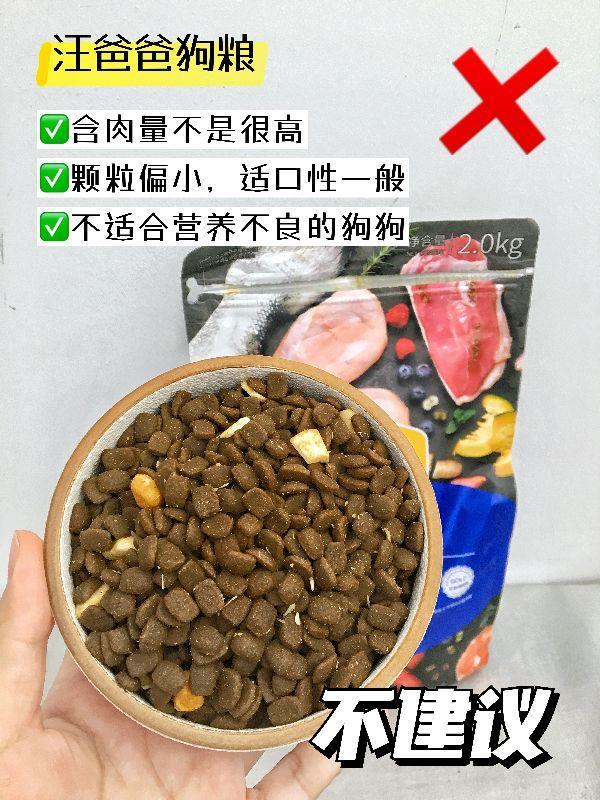 汪爸爸狗粮:肉含量不是很高,颗粒偏小,适口性一般,不适合营养不良的狗狗