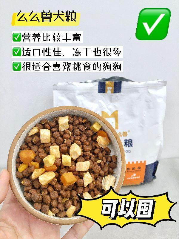 么么兽犬粮:营养比较丰富,适口性佳,冻干也很多,很适合喜欢挑食的狗狗。