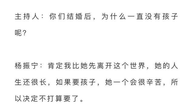 杨振宁也曾公开回答有关两人无子的话题,字里行间都是对翁帆的体贴和爱意。