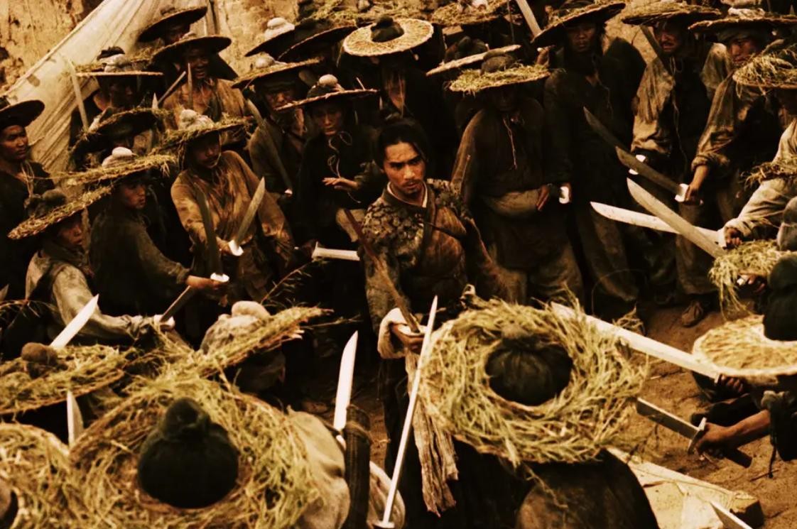 而张学友饰演的洪七,是一名赤脚刀客。他消灭了马贼,然后答应了村姑的要求,只身杀掉了太尉府的刀客,报酬只是一颗鸡蛋,却被砍断了一根手指。他的形象勇猛而又悲壮,完美地展现了英雄的孤独和无奈。