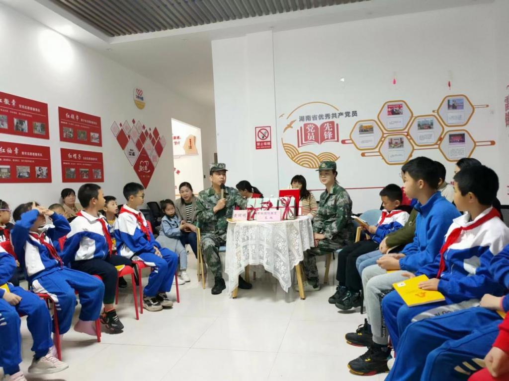 " 同学们,你们知道‘八大员’吗?"4 月 22 日,望城人武部在同心园社区雷锋驿站组织 " 雷小锋 " 们正围坐在湖南军联国防教育基地副主任黄照明身边,认真聆听黄教官讲述《兵生活》中的 " 八大员 "。