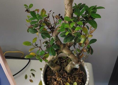 要是不注意空气湿度,叶片会略微有点变黄,生长状态也不会很好。维持空气湿度的方法就是给植株多喷水,这样既可以洗去榕树叶片表面的灰尘,还能增湿,效果非常不错。