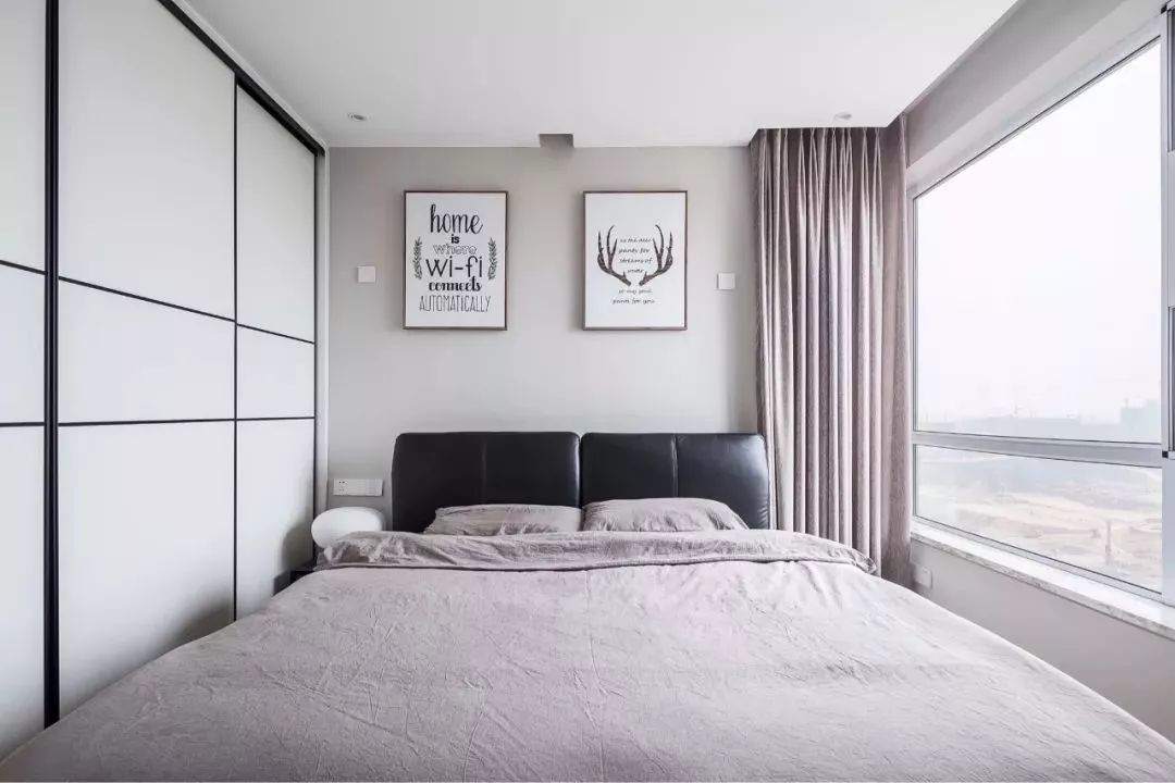 ▲床头有窗户的话,刚好避开窗户的布置,实在没办法,床头高度的位置也建议是实体墙,避免落地窗。