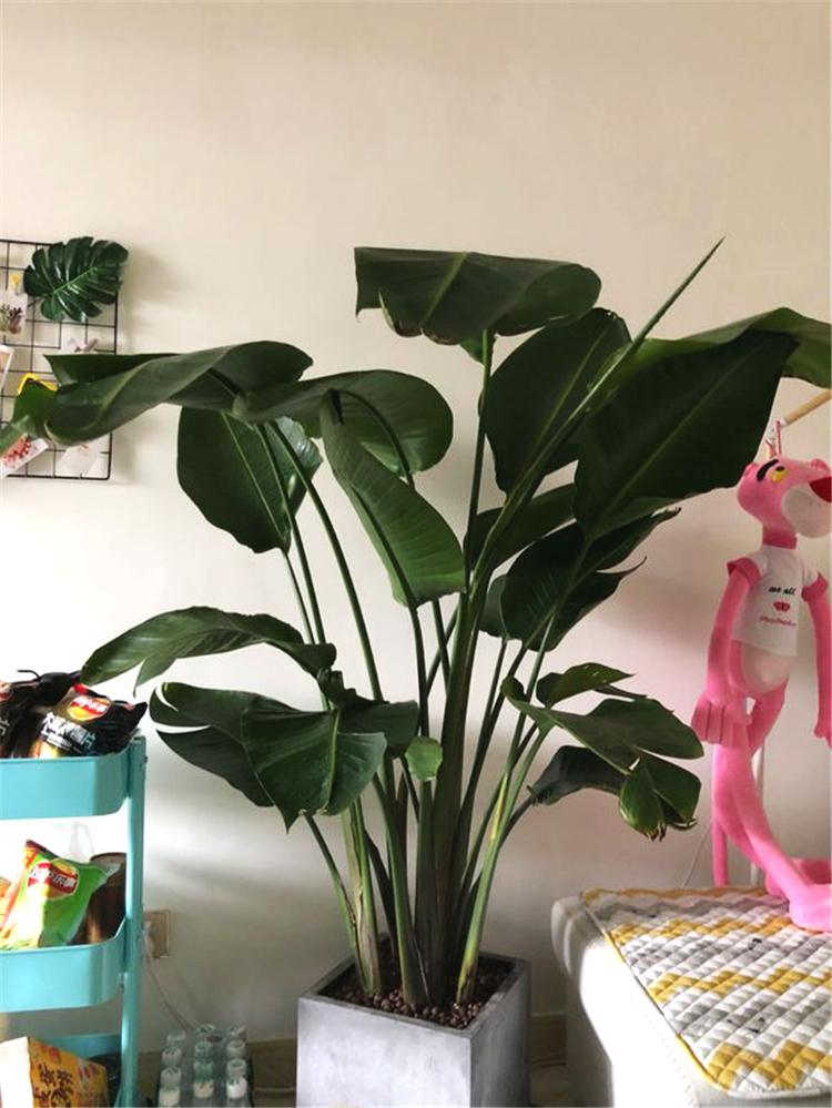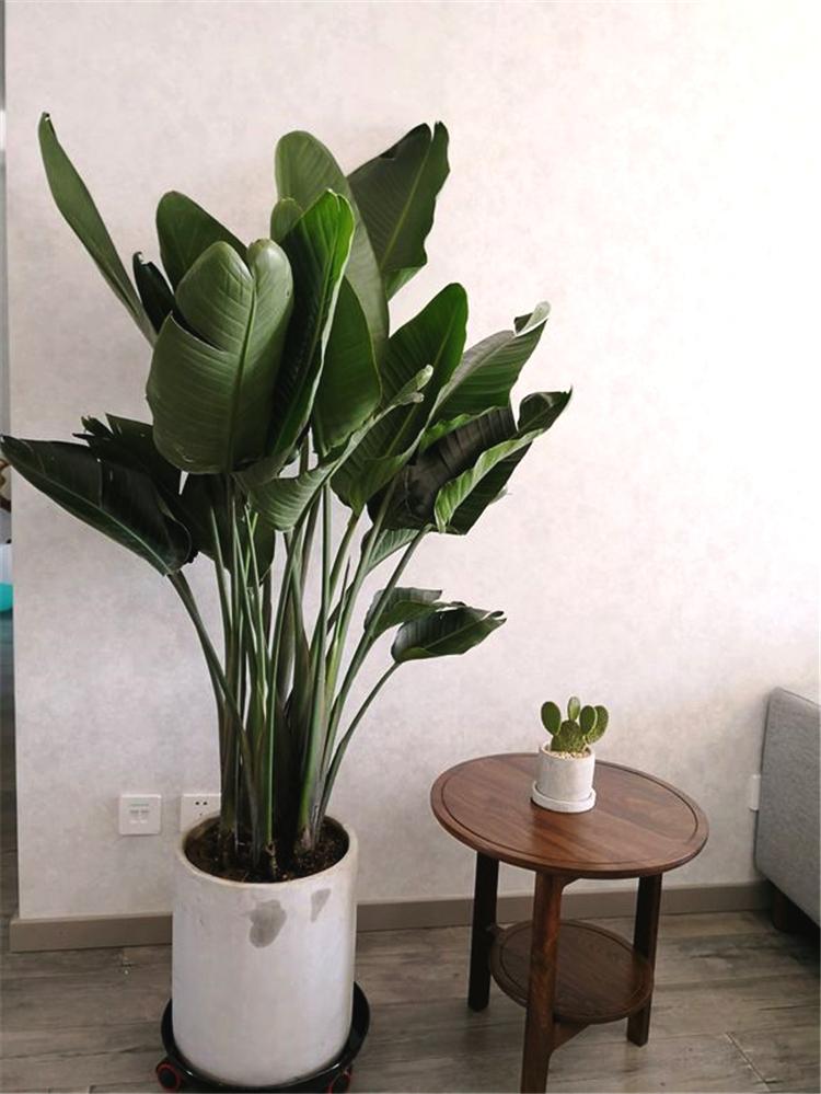 鹤望兰也叫天堂鸟,它的叶片硕大,茎秆比较挺拔,放在客厅里又清新又干净,比较适合现代的简约风格,装在一个漂亮的花盆里,让家里格调升高,大气又优雅。