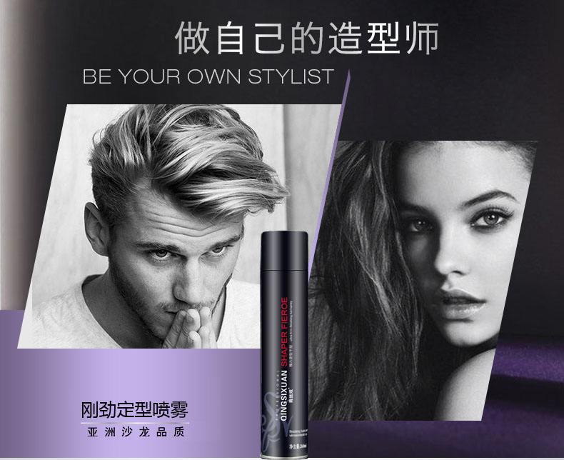 5、发胶分干胶和湿胶,一般是先将头发的大体做出来,在边喷边理头发,将头发摆到你想要的位置,每根发丝的方向就好了。