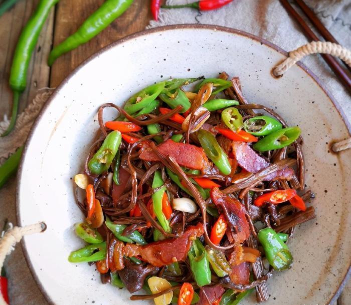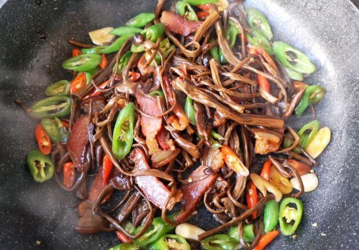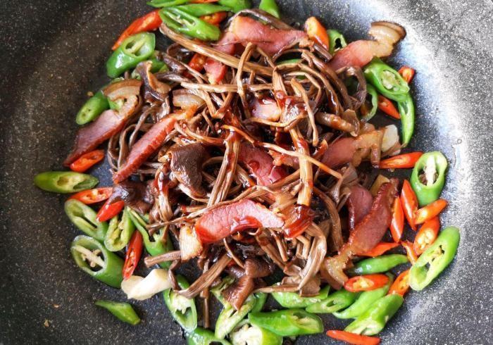 用腊肉爆炒茶树菇,更浓香的做法,够辣还有嚼头,越吃越香