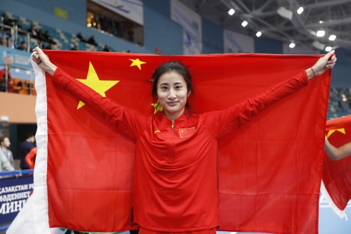 2月11日,陈婷在赛后庆祝。 新华社发(奥斯帕诺夫摄)