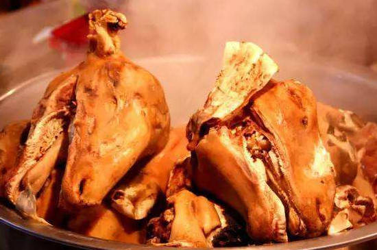 一羊十吃是徐州传统美食文化中的经典,全羊宴更是全国闻名,十吃中的煮羊头是一种风味小吃,它的制作方法非常简单,首先把新鲜羊头的羊毛全部烧掉,洗干净去除羊角后放入锅中煮,煮熟后蘸盐食用,啃起来劲道十足。