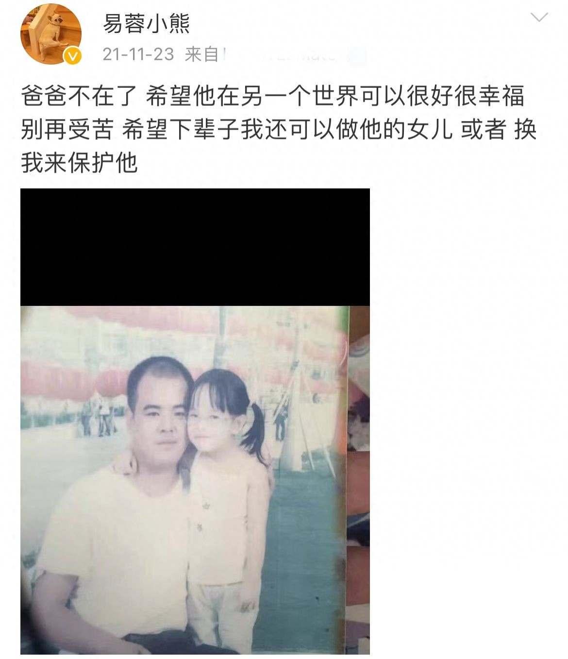 2025年,易爸去世了,这个宠爱孩子的慈祥父亲因突发急病早早撒手人间。