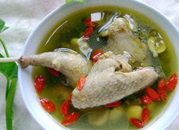 用料:鸽子1只、绿豆60克、莲子50克、枸杞20粒、姜2片、盐1茶匙