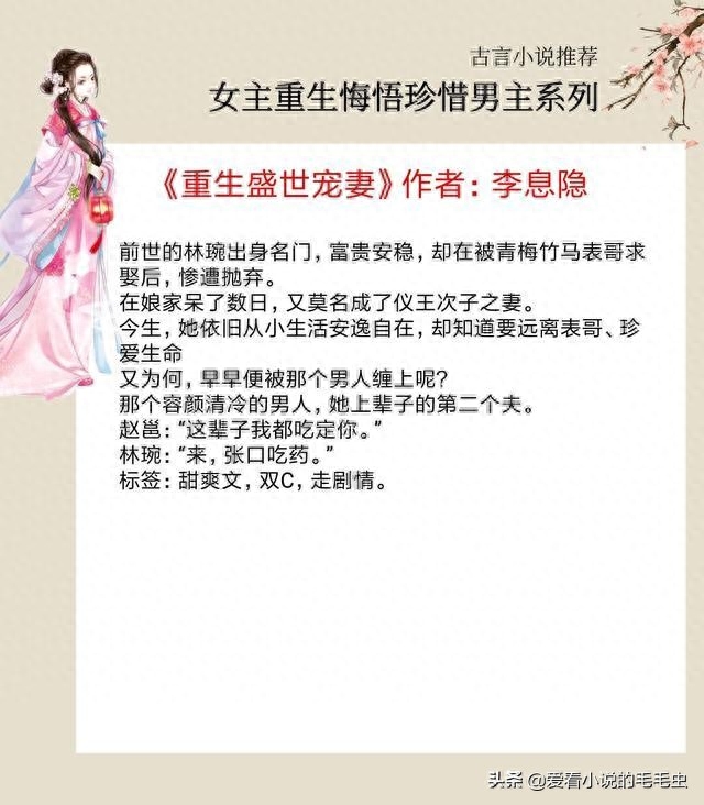 大家好,我是毛毛虫,今天给大家推荐5本古言女主重生悔悟文:前世辜负了他,今生好好珍惜他!