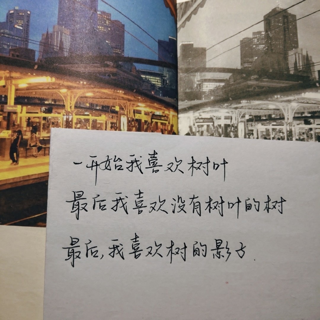 5、一开始我喜欢树叶,最后我喜欢没有树叶的树,最后,我喜欢树的影子