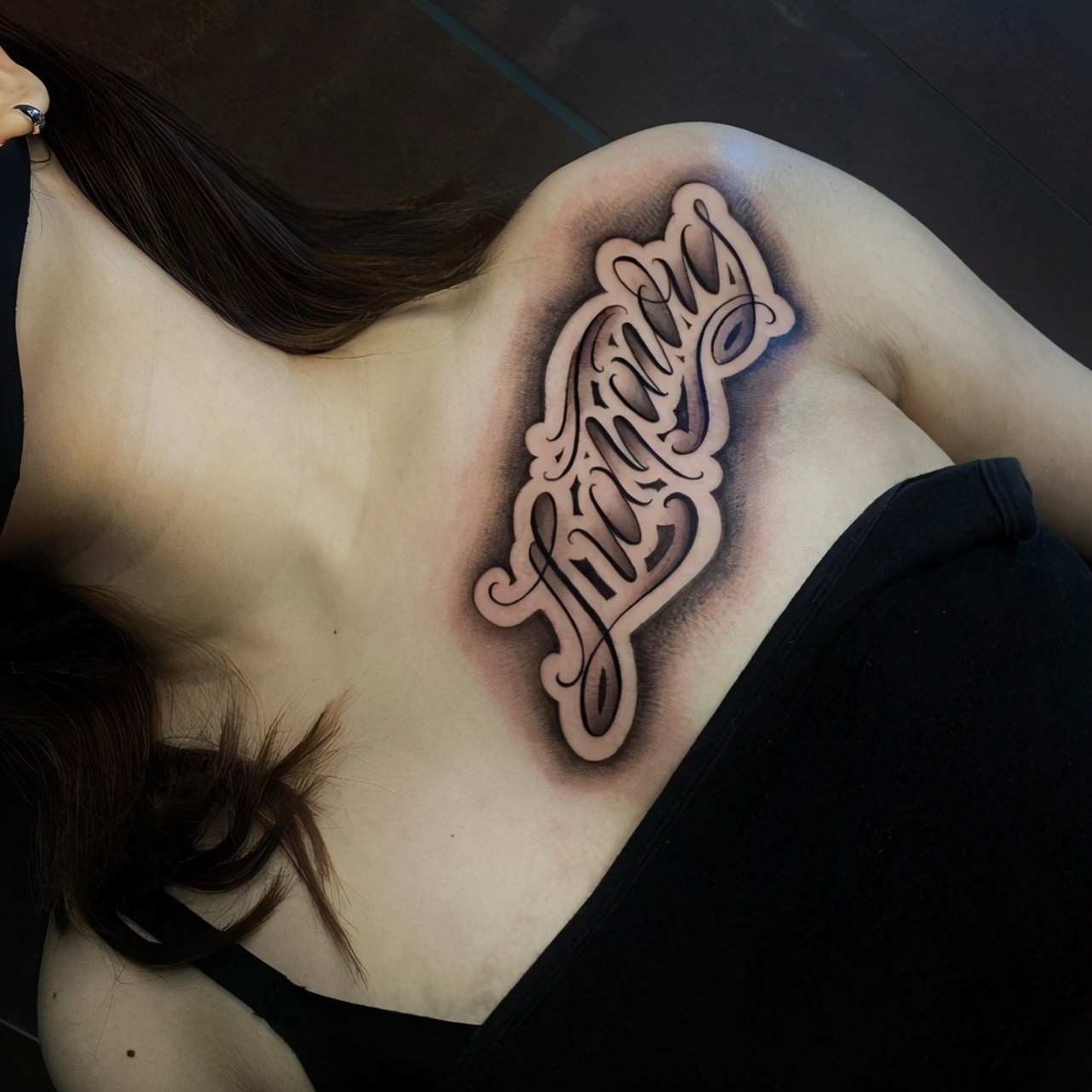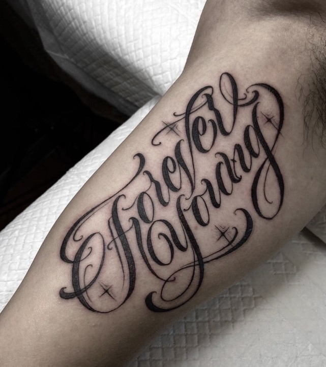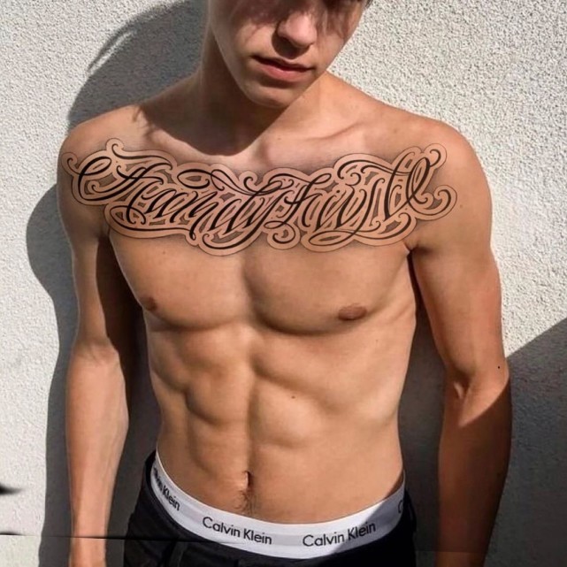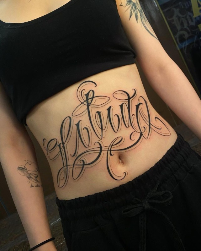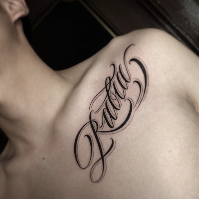 英文字母纹身的设计美术化,更大程度的体现美感,依照对应的纹身位置和字母数量,设计出流畅协调美观的纹身图案