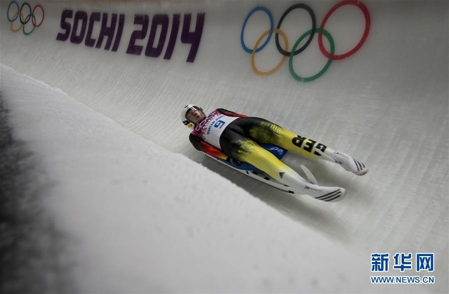 ↑无舵雪橇是一项迅速滑行的运动,由1至2名运动员仰面躺在雪橇上,双脚朝前滑下1000至1500米的滑道。最终成绩的测量精确到千分之一秒。雪橇赛事的赛道呈U字形,赛道两边的护墙高于50厘米,以防止雪橇偏离中心滑出赛道。赛道须包括左右转向、急转弯、S字形以及迷宫式弯道。雪橇的主原料是玻璃纤维和钢铁,每个雪橇都需要按照选手的身高、体重以及身体比例量身打造。雪橇上没有支撑头部的部分,只有从肩膀到膝盖部位的支撑。平昌冬奥会无舵雪橇比赛共设男子单人、女子单人、双人和团体接力四个小项。图为2014年2月11日,德国选手许夫纳在2014年索契冬奥会无舵雪橇女子单人项目比赛中。 新华社记者费茂华摄