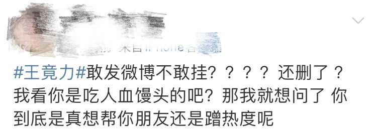 网友纷纷评论:“敢发微博不敢挂???还删了?我看你是吃人血馒头的吧?那我倒想问你,你到底是真想帮你朋友还是蹭热度呢?”,还有网友认为王竟力不提肖战没人认识他。