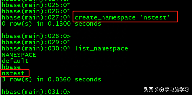 create nstest:t1, {NAME => f1, VERSIONS => 5}